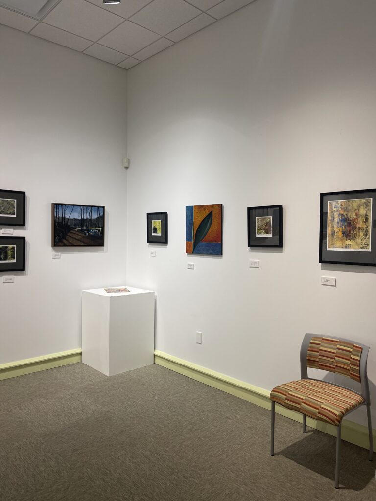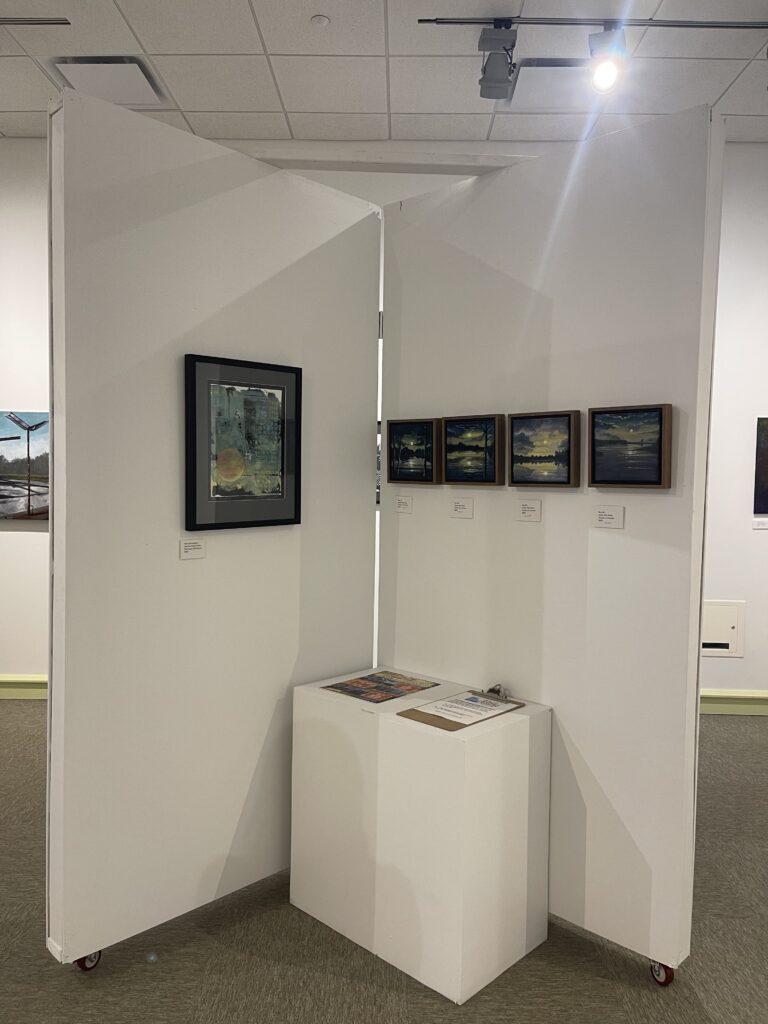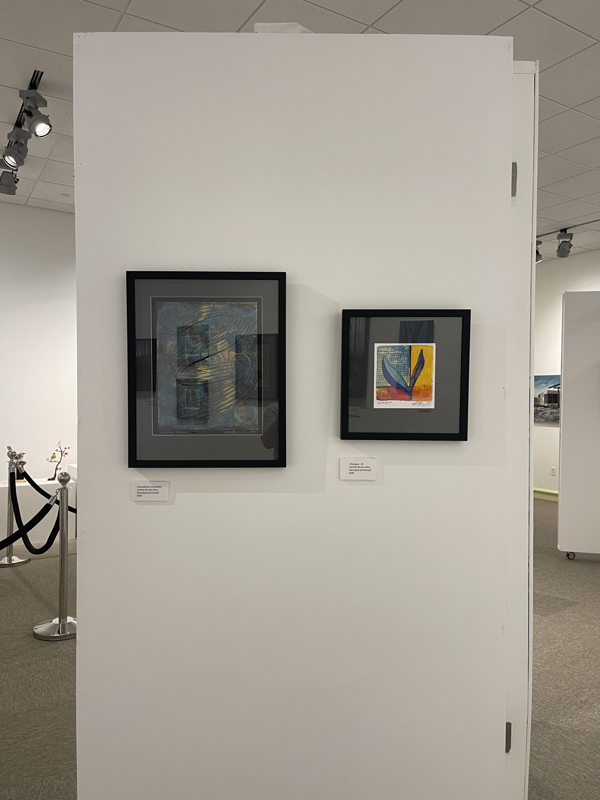 Jennifer Bruton Sims showcases mixed media pieces that incorporate monotype prints, collage, and painting. Her Cedar Sink and Lifescape series explore the serenity of nature and the fragile, evolving nature of human relationships.