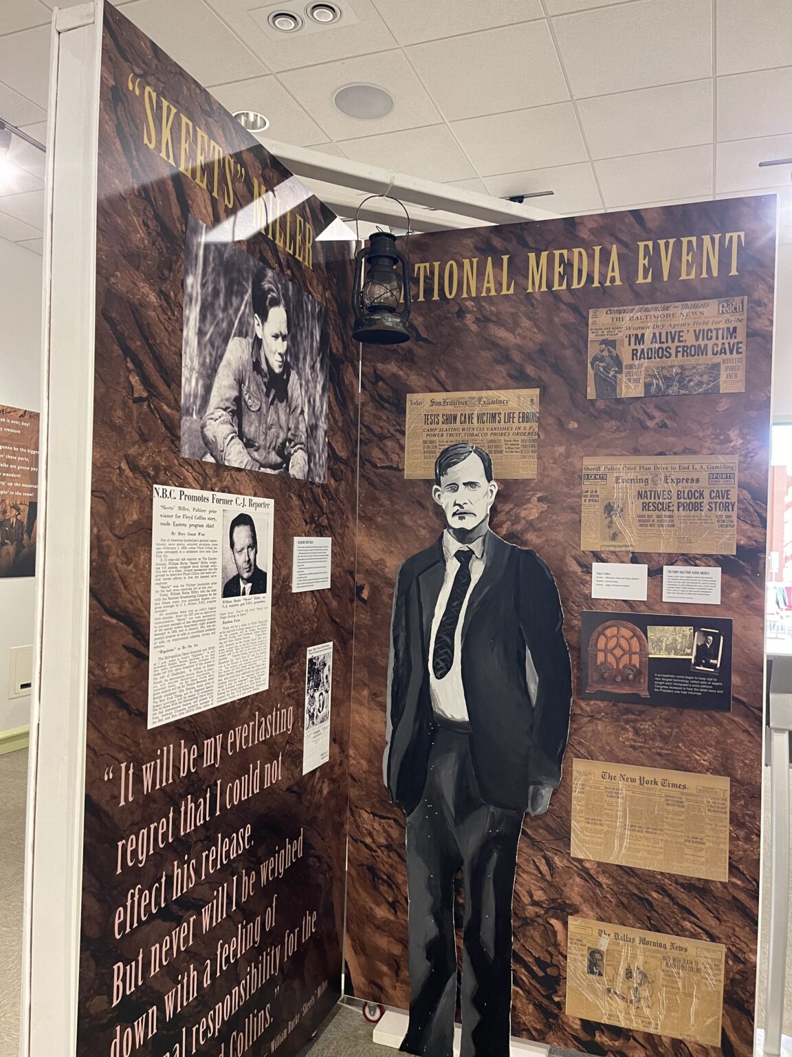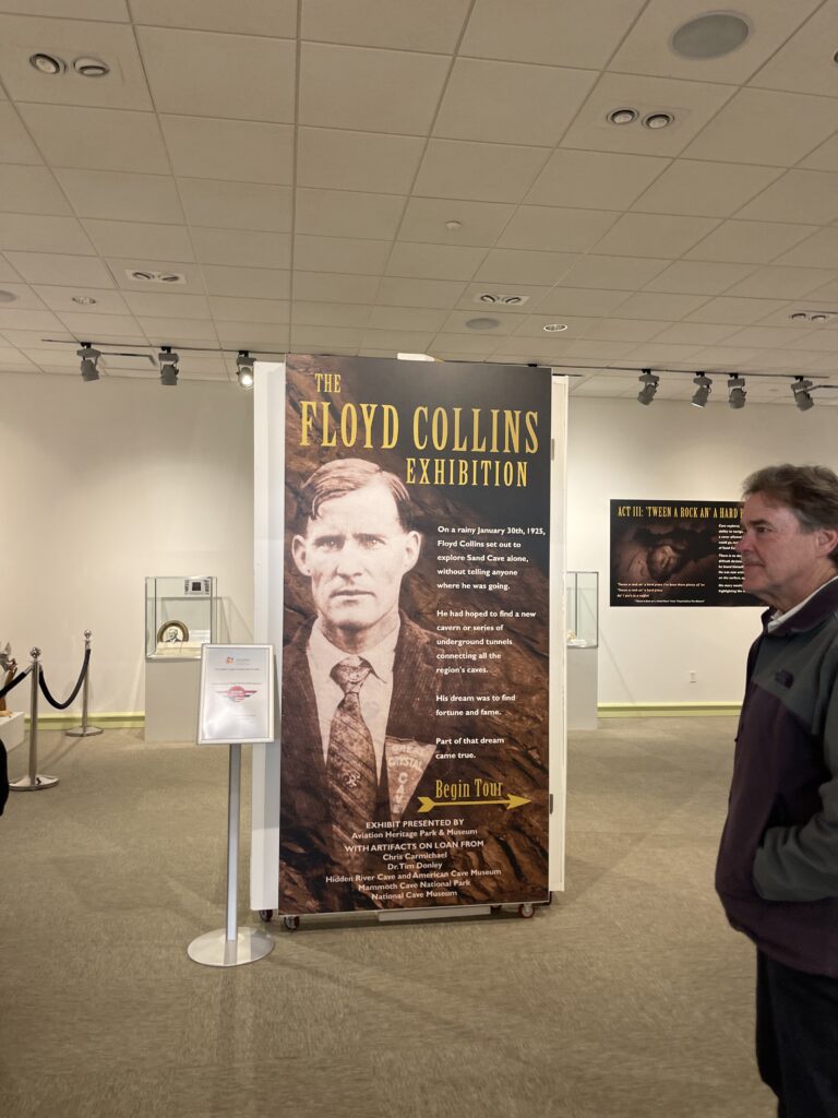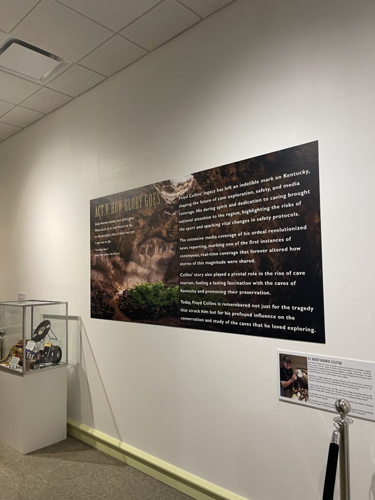 Presented in partnership with the Aviation Heritage Park, National Cave Museum, Hidden River Cave, Chris Carmichael, and Dr. Tim Donley, The Floyd Collins Exhibition brought to life the incredible legacy of Kentucky’s most storied cave explorer. This immersive experience featured interactive elements, historical timelines, and authentic artifacts—including original newspaper clippings and articles chronicling Floyd’s tragic entrapment in 1925. The exhibit not only explored the events surrounding Floyd’s ordeal but also highlighted the broader impact on media, rescue operations, and Kentucky’s cave culture.